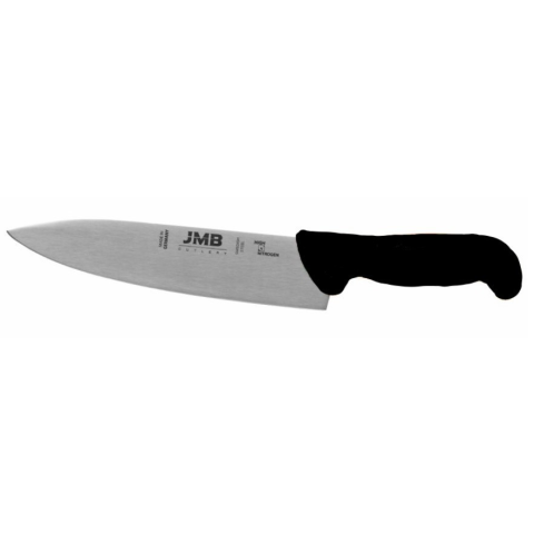JMB szakácskés 200mm pengével fekete Svéd minőségű Sandvik 14C28N acélból készül. Ez a legfejlettebb high-tech késacél magas nitrogéntartalommal. Ideálisan finom és homogén szerkezetének köszönhetően ez az acélfajta nagy keménységet, kiváló éltartást é