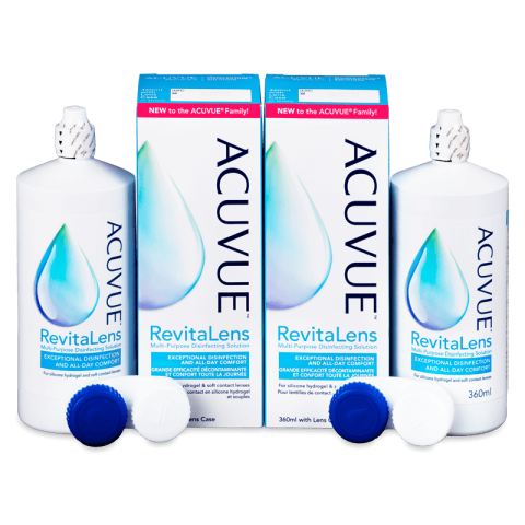 Vásároljon Acuvue RevitaLens-t 2 x 360 ml-es, praktikus kiszerelésben. Minden egyes palack többcélú ápolószerhez egy lencsetartó is tartozik.