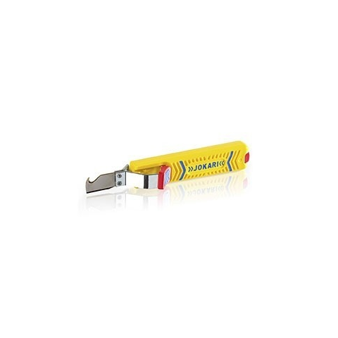 Jokari Secura No. 28H Kábelkés kampós pengével hengeres kábelekhez! Egyedülálló csúszás gátolt markolat, a jobb fogás és biztonságos használat érdekében. 8-28 mm átmérő standard hengeres kábelek szigetelésének eltávolítására. Állítható vágásmélység Automa