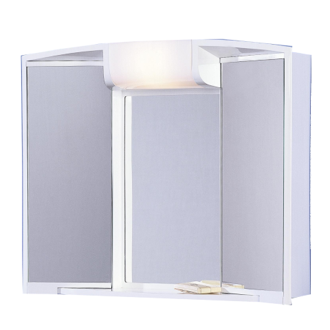 Angy tükrösszekrény, fehér, műanyag, mérete: 59x50x15 cm. E14 foglalat van a termékben. A fényforrás nem tartozék.