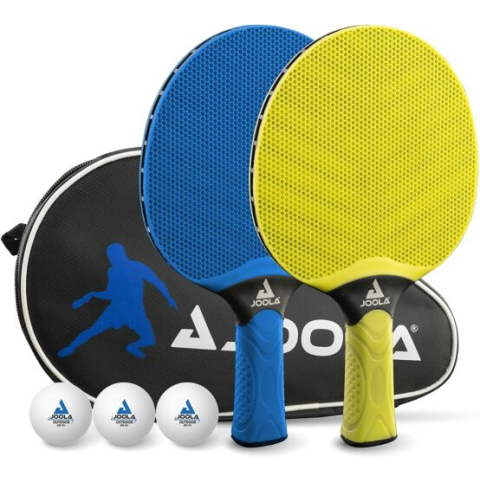 Szél, eső, hó vagy hőség: ezek nem jelenthetnek akadályt a JOOLA VIVID Outdoor ütő szett számára. A speciális technikával előállított műanyag ütők, gumi bevonatú ütőfelületének köszönhetően, a kültéri játék minden követelményének megfelelnek. Az ütő kontroll érzete kimagaslóan jó, amely mellett a speciálisan kialakított játékfelületnek köszönhetően a pörgetett és nyesett ütések is könnyedén kivitelezhetők. Az ergonómiailag formált és sta