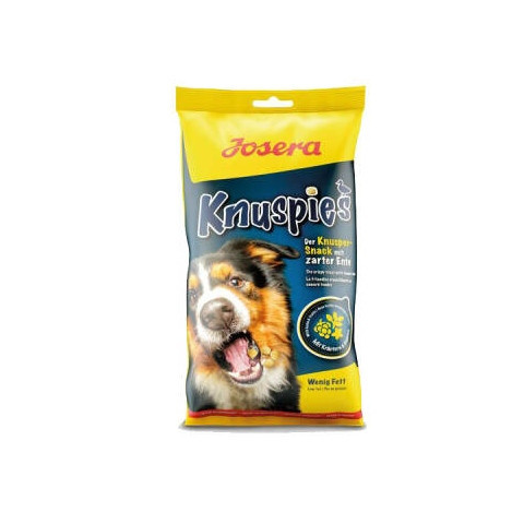 Ropogós Snack ízletes kacsával! A JOSERA Knuspies tökéletes jutalom az étkezések között. A ropogós golyók a zsenge baromfi miatt különösen ízletesek, 15% ízletes kacsával. Az extra alacsony zsírtartalom miatt a Knuspies különösen könnyen emészthető.