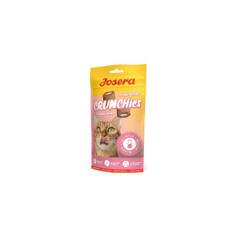 A Josera Crunchies with Milk egy ropogós, gluténmentes csemege jutalomfalat tejjel és krémes töltelékkel macskáknak.