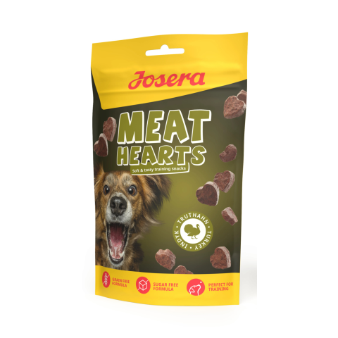 A Josera Meat Lovers Meat Hearts Turkey egy természetes, gabonamentes pulykahúsos jutalomfalat kutyáknak. Szív alakú, puha falatok, amelyek ízletesek, egészségesek és ideálisak mindennapi jutalmazásra, sétákhoz vagy tréninghez. A Josera Meat Lovers Mea