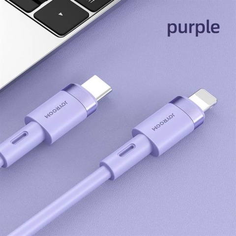 Termék kategóriája: Kábel | Kapacitása: 3.0A | Csatlakozója:Lightning/USB Type-C | Márkája: JOYROOM | Színe: Lila | Anyaga: Liquid Silicon | Mérete: 120cm | Típusa: PD | Alkatrész típusa (ha alkatszész): | Egyéb jellemzője: / Quick Charge/G