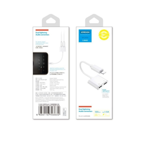 1 kép JOYROOM S-Y104 Ben 2xLightning Audió és Töltő Adapter - Fehér