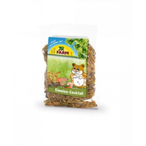JR FARM FEHÉRJE KOKTÉL A JR FARM Protein Cocktail a kiváló minőségű állati fehérje ideális forrása minden vegyesen táplált rágcsáló, például hörcsög, patkány, vagy egér számára. Az egészben szárított apró rovarok, mint például a szöcskék és a lisztkukacok, valamint a rákfélék, mint például a garnélarák, nemcsak abszolút ízletesek, hanem az étrend nélkülözhetetlen részét is képezik. Kiegészítő eledel patkányok, hörcsögök, egerek és minden m