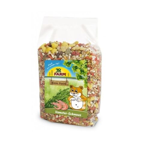 A Jr Hörcsög-lakoma egészséges, naturális, főtáplálék, hörcsögök számára, elismerten a legjobb német minőség.Összetevők: extrudált kukoricaliszt, búza, vörös köles, sárga köles, zab, kukorica, cirok bicolor, sárgarépa, puffasztott búza, kanári fűmag 3%, hajdina, cirok, Mung bab, marhahús, csirke, hal, garnélarák 1%, extrudált rizsliszt, sajt. Adalékok: A-vitamin (mint A-palmitát) 10.000, azaz a D3-vitamin (mint kolekalciferol) 1.000, azaz az E-vitamin (mint a