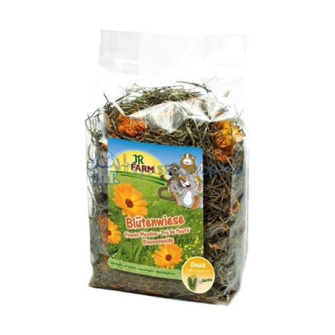 Egészséges táplálék minden napra. Ez az ínyenceknek készült illatos csemege gyengéden szárított, aromás virágú réti zabfűből áll, ezért természetes vitaminokban gazdag. A magas nyersrosttartalom optimális emésztést biztosít, így növelve a jó közérzetet.Kiegészítő eledel minden rágcsálónak és törpenyúlnak. Összetétel: Hegyi réti széna 80%, körömvirág 10%, búzavirág 5%, rózsavirág 5%. Analitikai összetevők: Fehérje 12,6%, zsírtartalom 3%, nyers