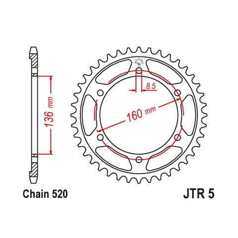 1 kép JT JTR5.40 hátsó lánckerék JT Erőátviteli alkatrész Lánc, lánckerék, láncszett Hátsó lánckerék