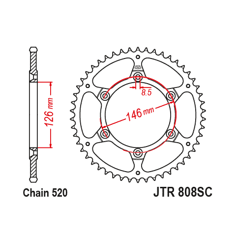 1 kép JT JTR808.50SC hátsó lánckerék JT Erőátviteli alkatrész Lánc, lánckerék, láncszett Hátsó lánckerék