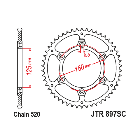 1 kép JT JTR897.52 Hátsó lánckerék JT Erőátviteli alkatrész Lánc, lánckerék, láncszett Hátsó lánckerék