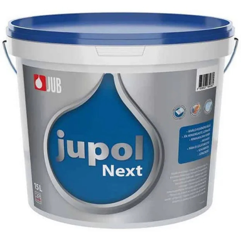 Jub Jupol Next beltéri matt fehér falfesték kiváló fedőképességű, és kivételes fehérségű, matt beltéri falfesték, amely alkalmas új, és korábban már festett, vakolt, glettelt vagy gipszkarton, beltéri fal- és mennyezeti felületek dekoratív festésére.