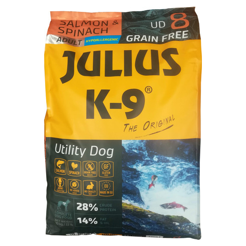 Teljes Julius-K9 GF Hypoallergenic Utility Dog Adult Salmon & Spinach 10 kg termékleírás