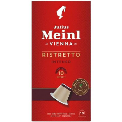 Kávékapszula - ristretto, kávékeverék, dark (intenzitás 10), malátás tónusú, származási helye Dél-Amerika, bioműanyag anyagú kapszula, 10 kapszulát tartalmaz Sporttáplálkozási sablon színstílusának módosításaJulius Meinl Nespresso Ristretto Intenso Nespresso Ristretto Intensokomposztálható kávékapszulákA Julius Meinl Ristretto Intenso kávékapszulák dél-ame