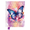 Emlékkönyv JUNIOR Butterfly szív alakú lakattal A5-ös méretű, keménytáblás, cérnafűzött emlékkönyv. Sima lapokkal, 80 lapos. Kétkulcsos szív alakú lakattal. Az emlékkönyv szalagos könyvjelzőt tartalmaz. Mérete: 14x18 cm
