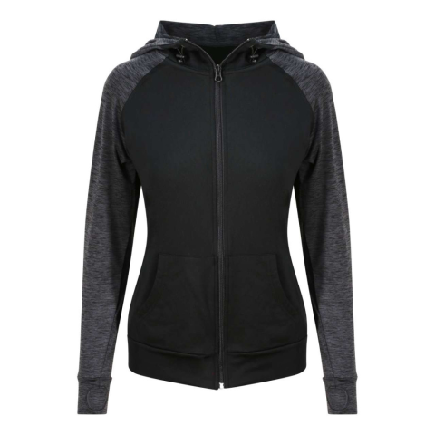WOMEN'S COOL CONTRAST ZOODIE Kontraszt: 92% poliészter, 8% elasztánKarcsúsított szabásAz AWDis saját, elasztántartalmú anyagkeveréke, amely biztosítja a sztreccsességet a kényelem és a jó illeszkedés érdekébenNedvszívó, gyorsan száradó szövetTeljes elü