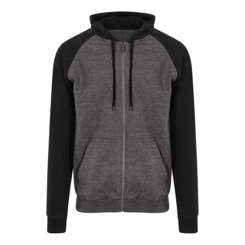 Just Hoods Uniszex kétszínű kapucnis cipzáros pulóver, 80% gyűrűs fonású pamut / 20% poliészter Hagyományos szabás Kontrasztos raglán ujjak Dupla anyagú kapucni Műanyag YKK cipzár Kontrasztos, lapos húzózsinór Osztott kenguruzseb Bordázott mandzsetta és s