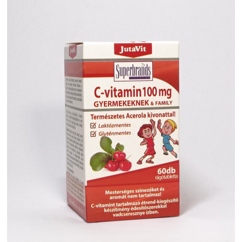 JutaVit C-vitamin 100 mg GYERMEKEKNEK & FAMILY Természetes Acerola kivonattal! Laktózmentes. Gluténmentes. Mesterséges színezéket és aromát nem tartalmaz! C-vitamint tartalmazó étrend-kiegészítő készítmény édesítőszerekkel vadcseresznye ízben. A készít