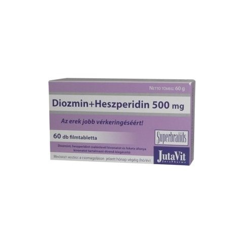 JutaVit Diozmin+Heszperidin 500mg, olyan készítmény, amely diozmint, heszperidint, csalánlevél kivonatot és fekete áfonya kivonatot tartalmaz. A készítmény fő hatóanyaga a jól ismert természetes eredetű citrusfélékből kivont heszperidin és a diozmin. M
