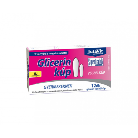 JutaVit 12 db Glicerin végbélkúp Gyermekeknek Hatásmechanizmus: Fellazítja és nedvesíti a székletet, megkönnyítve annak kiürülését. Használati utasítás: Vegye ki a végbélkúpot az alumínium buborékfóliából és a kúp keskenyebbik felével helyezze be telj