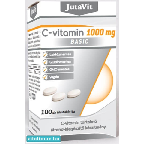 C-vitamin tartalmú étrend-kiegészítő készítmény. C-vitamin tartalmú étrend-kiegészítő készítmény. JutaVit C-Vitamin 1000 mg Basic. Laktózmentes Gluténmentes GMO mentes Vegán A C-vitamin hozzájárul az immunrendszer és az idegrendszer normál működéséh
