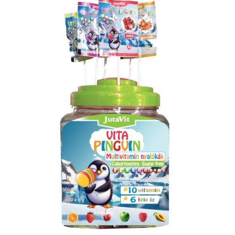 Jutavit vita pingvin cukormentes nyalóka több ízben 6 g Multivitamin nyalókák étrend-kiegészítő készítmény édesítőszerekkel. 10-féle vitaminnal, 6-féle gyümölcs ízben. Adagolás: 3 éves kortól naponta maximum 2 nyalóka fogyasztása ajánlott. Figyelme