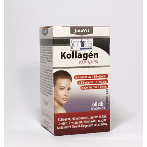 A JutaVit Kollagén komplex + hialuronsav + C-vitamin + szerves cink + Biotin + B2-vitamin + B3-vitamin terméke kollagént, hialuronsavat, szerves cinket, Biotint, C-vitamint, Riboflavint, Niacint tartalmazó étrend-kiegészítő készítmény. A C-vitamin hozzáj