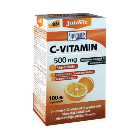 JutaVit C-vitamin 500 mg narancs ízű rágótabletta C-vitamint, D3-vitamint és csipkebogyó kivonatot tartalmazó étrend-kiegészítő készítmény édesítőszerekkel. JutaVit C-vitamin 500 mg narancs ízű rágótabletta C-vitamint, D3-vitamint és csipkebogyó kivo