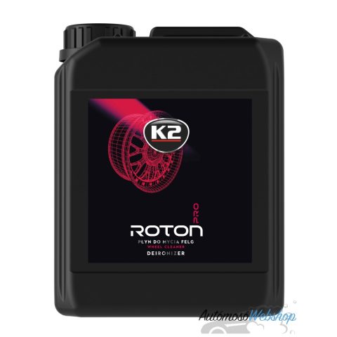 PH semleges, magas hatékonyságú keréktisztító a makacs lerakódások eltávolításához, beleértve a salakot a fékbetétekből és az út porát az acélból, alumíniumból, krómozott és festett kerekekből. A K2 ROTON gyorsan és látványosan hatol be és távolít el mindenféle szennyeződést a felület megkarcolódásának veszélye nélkül. A szennyeződések feloldódásakor a K2 ROTON PRO sötétvörös színűvé válik, ami a „vérző kerék” benyomását kelti. Bizto