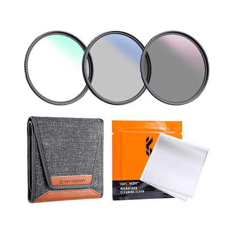 K&F Concept Professzionális szűrő szett tartalmaz: UV szűrő + CPL szűrő + ND4 szűrő + szűrőtartó tok a 3db szűrő számára A szűrők importált japán optikai üvegből készültek. Kék bevonattal, magas tükröződésmentességgel, hogy a képnek valódi színe és minősége legyen. A magas minőségű CNC megmunkálás miatt, könnyen fel és lecsavarható az objektívről. A szűrőtartó tok 3db szűrő számára biztonságos tárolást nyújt. UV: védi az objektívet a fiz