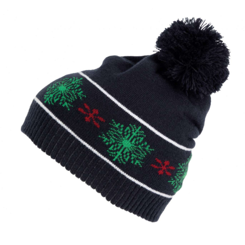 BEANIE WITH CHRISTMAS PATTERNS 95% akril / 5% elasztánBojtos sapka