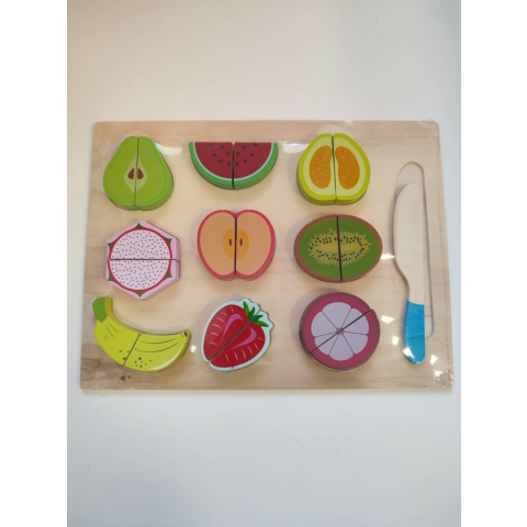 A félbevágható gyümölcsök fajáték kedvelt játéka lesz a gyermeknek a saját kis konyhájában. A gyümölcsök darabjai tépőzárral vannak egymáshoz rögzítve, melyek a kis fa késsel könnyen szelhetők. Nemcsak szerepjátéknak tökéletes, hanem remekül fejleszti a kisgyermek szem-kéz koordinációját, a kézügyességet, segít összerendezni a finommozgásokat,. fejleszti az ismereteket, az azonosság-különbség érzékelését, a szín