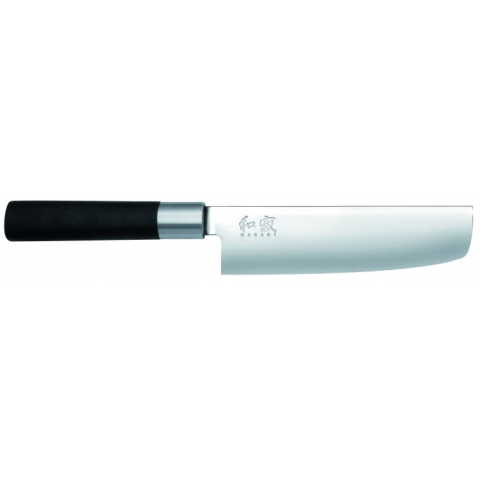 A japán Kaimárka Wasabi Black Nakiri kés 16,5 cm-es pengével egy hagyományos japán kés, amelyet elsősorban zöldségek és fűszernövények vágására használnak. Széles, egyenes pengéje pontos és gyors vágást tesz lehetővé, ugyanakkor megkönnyíti a vágott alapanyagok közvetlenül a vágódeszkáról a fazékba vagy serpenyőbe való átrakását.A penge kiváló minőségű japán Daido 1K6 rozsdamentes acélból készült, keménysége 58±1 HRC, ami garantálja a hoss