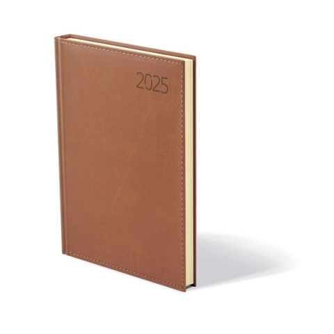 Matt, hőre színeződő olasz műbőr bevonóval, varrott kerettel készül. B5 méretű, heti beosztású, 144 oldal, chamois (krémszínű) tömbös naptár, színes oromszegővel, jelzőszalaggal, sarokperforációval...