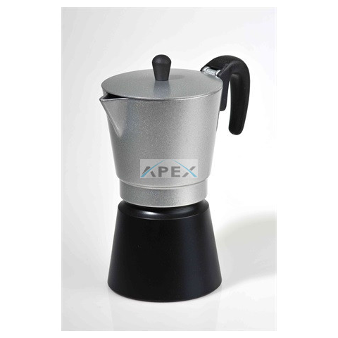 2-4 személyes hagyományos kotyogós kávéfõzõ. Biztonsági szeleppel nem igényel elektromos áramot, gáztűzhelyen, elektromos főzőlapon is kitűnő aromájú eszpresszó kávé készíthető. Tulajdonságok: Alumíniumból készült Mûanyag