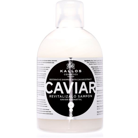 Sampon nők számára - hagyományos sampon, normál hajra ajánlott, fényesítő, hidratáló és regeneráló hatás, 1000 ml-es kiszerelésben, professzionális kozmetikum A Kallos Caviar Restorative Shampoo sampon azonnal puhaságot és káprázatos fényt kölcsönöz a hajnak. A készítményt kaviárral gazdagították, amely erősíti a hajat és növeli annak ellenálló képességét.