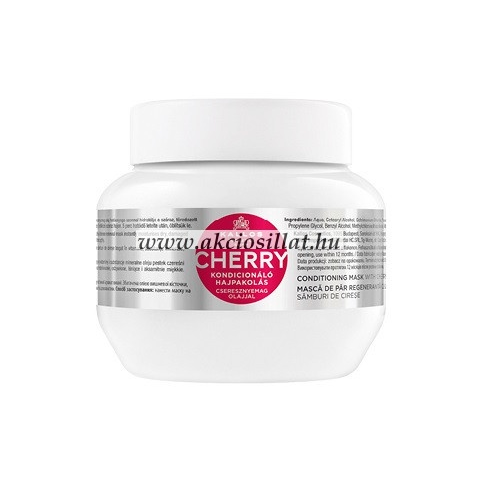 Kallos Kjmn Cherry Kondicionáló hajpakolás cseresznyemag olajjal 275ml Vitaminokban és ásványi anyagokban gazdag. A cseresznyamag olaj hatékonyan táplálja és védi az igénybe vett hajat. Használatának köszönhetően könnyen kezelhető, ápolt, puha és fényes