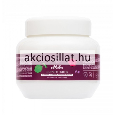 Kallos Kjmn Hair Pro-tox Superfruits Hajpakoló Krém 275ml A Kallos Hair Pro-Tox Superfruits hajpakoló antioxidánsokban, vitaminokban és ásványi anyagokban gazdag szupergyümölcsöket tartalmaz, melyek visszaadják a haj eredeti, egészséges állapotát és fény