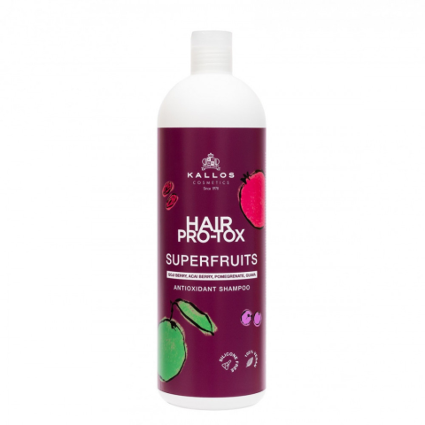 KALLOS HAJ PRO-TOX SUPERFRUITS KRÉMSAMPON ANTIOXIDÁNSOKBAN, VITAMINOKBAN ÉS ÁSVÁNYI ANYAGOKBAN GAZDAG SZUPERGYÜMÖLCSÖKET TARTALMAZ.Speciális Haj Pro-tox formula ötvözve az egyedi tulajdonságokkal bíró gyümölcsökkel ami visszaadja a haj eredeti egészséges