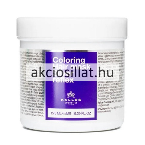 Kallos Silver Reflex hamvasító hajpakolás 275ml – A ragyogó, hamvas haj titka A szőke, ősz vagy szőkített haj különösen érzékeny a külső környezeti hatásokra, így idővel gyakran sárgás árnyalatot kaphat, amely tompítja a frizura természetes fényét és tisz