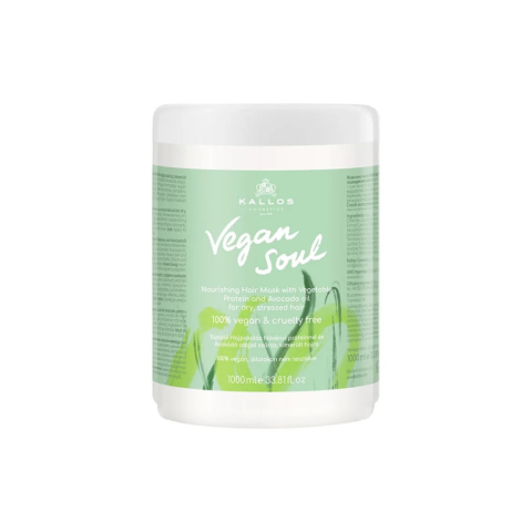 Kallos Vegan Soul Hajmaszk Száraz Hajra 1000ml. Ez a 100%-ban vegán hajmaszk kifejezetten a száraz haj ápolására készült. Növényi fehérjéket, tengeri algakivonatot, avokádó-, makadámia- és argánolajat tartalmaz, amelyek mélyen táplálják és hidratálják a hajat, visszaadva annak vitalitását.. Jellemzői:. Száraz hajra tervezve. Intenzíven hidratáló összetevők. 100% vegán, parabén- és szilikonmentes. Nem tesztelték állatokon. Használati utasítás:. Vidd fel a