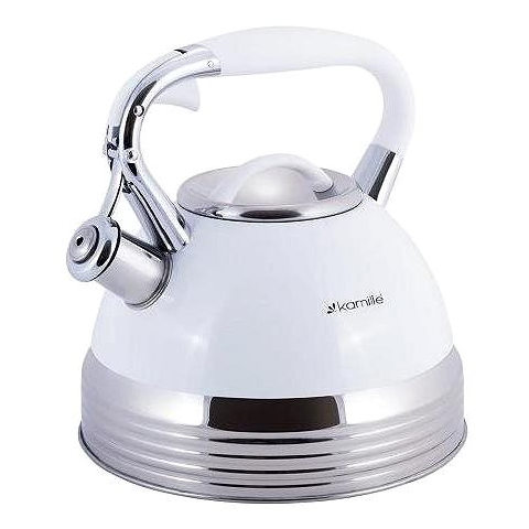 Vízforraló kanna - indukció, gáz és üvegkerámia, 2,7 l-es, síp, anyaga rozsdamentes acél, műanyag markolat, levehető fedél, talp átmérője 21,5 cm, fehér és ezüst kivitel, retro dizájn A vízforraló elengedhetetlen kelléke a konyhának, ha reggelente teát vagy kávét készítesz. A többi típussal szemben nagy előnye, hogy nem hálózati energiát használ. A nagyszerű kamille teáskanna maxim