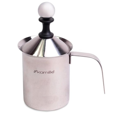 Tejhabosító - manuális, tejhab készítéséhez, mérőskála, készülék anyaga rozsdamentes acél, fedél a csomag része, űrtartalma 0,4 l, mérete 9 × 9 cm (Sz×Mé) Te is azok közé tartozik, akik szeretnek otthon cappuccinót, jegeskávét vagy caffè lattét készíteni? Akkor nem hiányozhat a konyhádból a minőségi kamille tejhabosító. A dizájnos kézi tejhabosító bárho