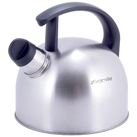 Vízforraló kanna - indukció, gáz és üvegkerámia, 1,5 l-es, síp, anyaga rozsdamentes acél, műanyag markolat, levehető fedél, fekete és ezüst kivitel, retro dizájn A vízforraló elengedhetetlen kelléke a modern konyhának. A többi típussal szemben nagy előnye, hogy nem hálózati energiát használ. A kitűnő kamille teáskanna térfogata 1,5 l. A következő főzőlapokhoz