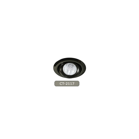 Felületbe építhető, 45 fokos szögben billenthető, kör alakú lámpatest mennyezeti és álmennyezeti világításhoz. A CT-2117 típusú lámpatest legfeljebb 35 Wattos halogén fényforrással üzemeltethető, mely nem tartozék. Billenthető, békaszemes spotlámpa, izzó nélkül.
