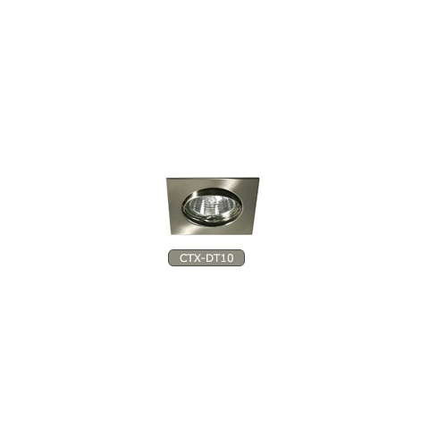 Fehér színű, négyzet alakú süllyesztett lámpatest, öntött alumínium ötvözetből, billenthető kivitelben (15 fokos szögben állítható). A CTX DT-10 típusú beépíthető lámpatest maximum 50 Wattos fényforrással működtethető, mely nem tartozék. Minimális távolság a megvilágított tárgytól 0,5 m.