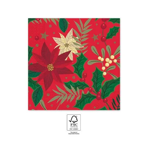Karácsony i Holly Poinsettia szalvéta 20 db-os 33x33 cm FSC