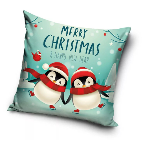 Merry Christmas, Karácsonyi pingvines párnahuzat 40*40 cm Csak párnahuzat! Mérete: 40x40 cm. Anyaga: 100% poliészter.