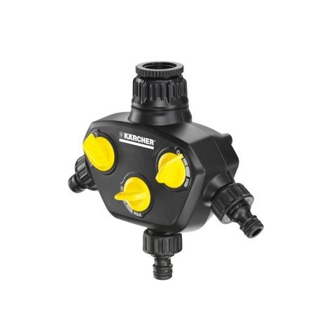3-utas elosztó 3 független, külön szabályozható vízcsatlakozással. Ideális három tömlő egy vízcsaphoz való rákötéséhez. (G1-csapcsatlakozó, G3/4-szűkítő). Kiváló minőségű 3-utas elosztó G1 csapcsatlakozóval és G3/4 szűkítővel egyszerre három tömlővel v
